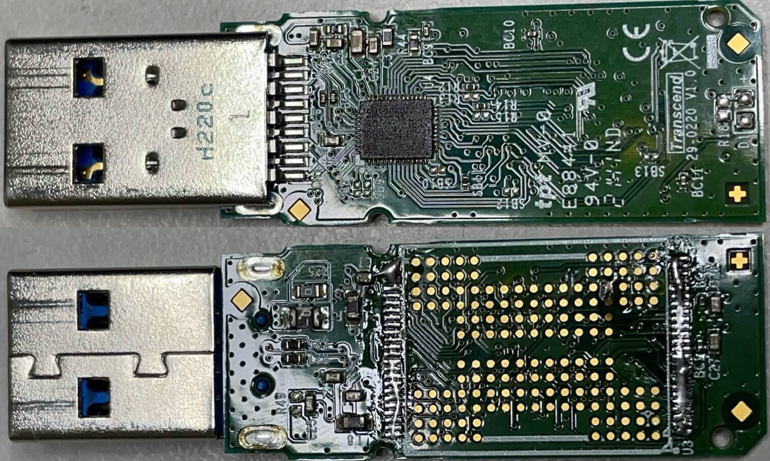 (圖片:隨身碟拆下外殼的正反面電路)