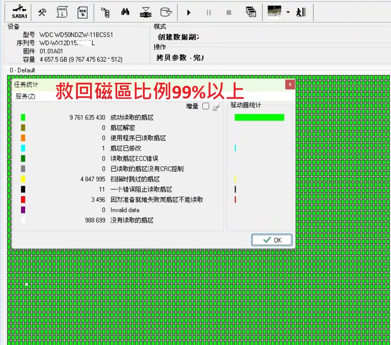 此成果在 WD SMR 外接硬碟電路板全毀案例中屬極高成功率。