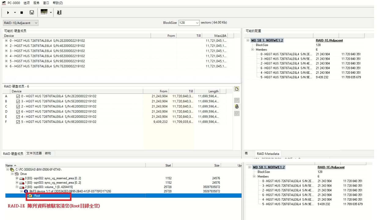 在 6 顆 HGST 6TB 硬碟 的 RAID 1E 環境中,若未正確解析:
